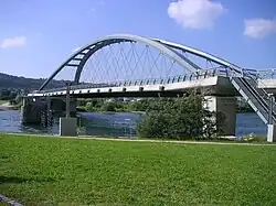 : CS1 maint: location missing publisher (link) - ^ "Die Stahlbogenbrücke au als Wahrzeichen der neuen Umfahrung Lanquart" [The steel arch bridge as a landmark of the new Lanquart bypass] (PDF). [hhtps://www.gr.ch Tiefbauamt Graubünden Info] (in German). Vol. 4. February 1994. Retrieved 28 November 2022.