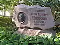 Stage actress, Imperial Theatres. Originally buried in the Smolensky Cemetery, transferred to the Tikhvin in 1936. Monument bust destroyed by bomb in 1943 during the siege of Leningrad. Replaced with a copy in 1955.