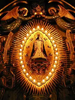 - ^ Pope John XXIII issued the coronation bull Magna Dei, hominuimque Mater on 8 May 1961, granting the privilege of crowning the image. The ceremony was carried out on November 12, along with the National Pilgrimage to her shrine. Vatican Secret Archives.