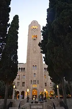 Israel has one carillon, located at the Jerusalem International YMCA. It was installed and dedicated along with the rest of the newly constructed building in 1933. Gillett & Johnston cast the original 35 bells, the heaviest of which weighs 1,500 kilograms (3,300 lb). In 2018, Royal Eijsbouts cast a 36th bell, weighing 800 kilograms (1,800 lb), for the instrument. It is one of the only carillons in the Middle East.[8][9]