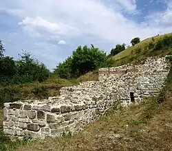Castra Martis is a Roman fortress (castra) in the Roman province of Dacia Ripensis on the modern town of Kula, in Vidin Province. Castra Martis has the best preserved Roman walls in Bulgaria and one of the best preserved in Europe. The height reaches 17 m. It used to protect the road through Vrashka Chuka pass in the western Balkan mountains. In 408, the Huns under Uldin took control of the site during an attack on the Eastern Roman Empire, apparently by treachery. | ![]() ![]() | |
