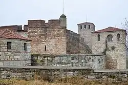Baba Vida is a medieval castle in Vidin to the north-west of Bulgaria. It consists of two concentric curtain walls and about nine towers of which three are preserved to their full medieval height, including the original battlements. Baba Vida is situated at an altitude of 39 m. The castle was among Bulgaria's most important strongholds in the Middle Ages and served as a capital of the Second Bulgarian Empire and the Tsardom of Bdin (Vidin) before it was seized by the Ottoman Turks in 1422. | ![]() ![]() | |