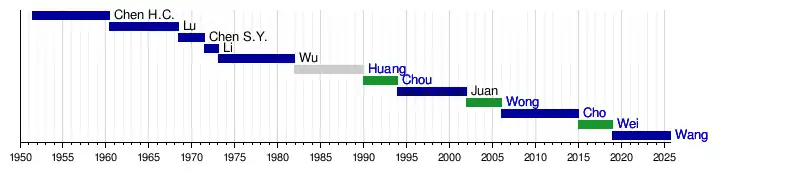 1 June 1951 | 2 June 1954 | 1 | Kuomintang |