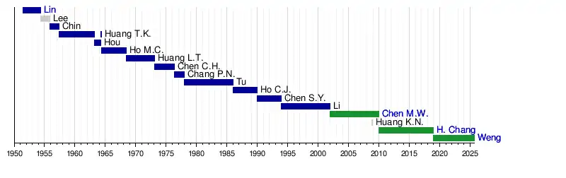 2 June 1957 | 2 June 1960 | 3 | Kuomintang |