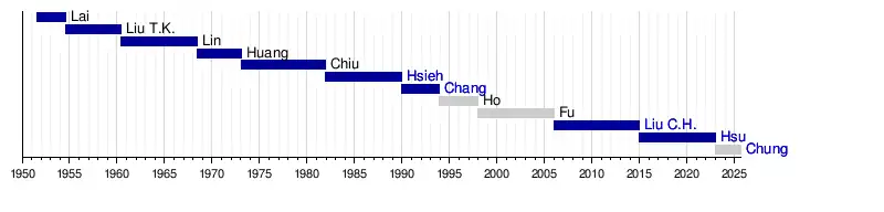 25 December 2014 | 25 December 2018 | 17 | Kuomintang |
