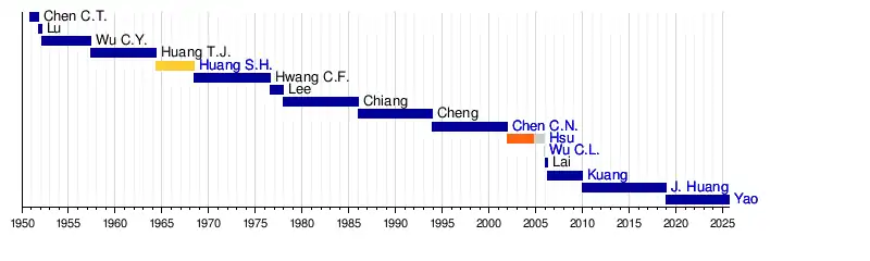 2 June 1968 | 1 February 1973 | Kuomintang | 6 |