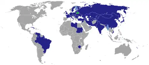 - ^ a b c d e f g h i j k l m n o p q r s t u v w x y z aa ab ac ad ae af ag ah ai aj ak al am an ao ap aq ar as at au av aw ax ay az ba bb bc bd be bf bg bh bi bj bk "ДЫПЛАМАТЫЧНЫ ДАВЕДНІК / ДИПЛОМАТИЧЕСКИЙ СПРАВОЧНИК / DIPLOMATIC HANDBOOK" (PDF) (in Belarusian, Russian, and English). Ministry of Foreign Affairs of Belarus. November 2024. Retrieved 17 January 2025.