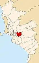 The province of Lima is divided into forty-three districts of Lima (Spanish: distritos), which are administered by the Metropolitan Municipality of Lima.[1] The urban area of Lima is generally considered to be formed by thirty of these districts. The remaining thirteen districts consist of mostly rural and sparsely populated desert and mountainous areas. Of these peripheral districts, many of the coastal ones serve as beach resorts and their population, which is considerably smaller than that of the urban districts, increases during the summer months.