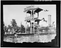 - Diving platforms and springboards at the salt-water, public Fleishhacker Pool in San Francisco. The facility opened in 1925 and was closed in 1971.