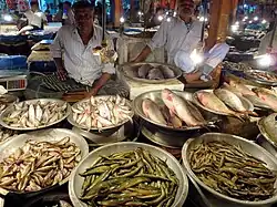 Bengali also has a generic term for three related fish species from the family Polynemidae. A lakkha fish (লাক্ষা মাছ) may be Eleutheronema tetradactylum, Leptomelanosoma indicum or Polydactylus sexfilis.[4] Another example is that of tengra (টেংরা) which is used to denote several species of catfishes from the families Mystus and Batasio.[5][6][a]