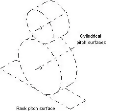 Pitch surfaces are the imaginary planes, cylinders, or cones that roll together without slipping. For a constant velocity ratio, the pitch cylinders and pitch cones are circular.[1]