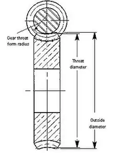 Throat form radius is the radius of the throat of an enveloping worm gear or of a double-enveloping worm, in an axial plane.[1]