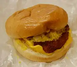 Two bars on the same street in South Minneapolis both claim to have invented the sandwich: Matt's Bar and the 5-8 Club.[27] | A cheeseburger that has the cheese inside the meat patty rather than on top. A piece of cheese is surrounded by raw meat and cooked until it melts, resulting in a molten core of cheese within the patty. |