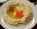 This is a list of notable hors d'oeuvre, also referred to as appetizers or starters, which may be served either hot or cold. They are food items served before the main courses of a meal, and are also sometimes served at the dinner table as a part of a meal. Many cultures serve dips, such as baba ghanoush, chili con queso, hummus, and tzatziki with bread or vegetables as hors d'oeuvre.