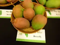 Beverly | United States | Beverly is an almost fiber-less late season mango, grown in South Florida, fruiting between August and October. | |