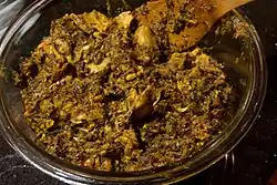 - Bobotie – a South African dish[6] consisting of spiced minced meat baked with an egg-based topping.[7]