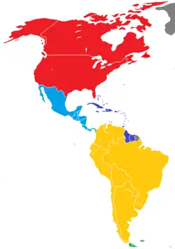 FIBA Americas (formerly the Pan-American Basketball Confederation), which controls North America, Central America, the Caribbean, and South America, has 43 national teams, divided into three areas.[3] The Central American and Caribbean Confederations of Basketball (CONCECABA) is further divided into the Central America and Caribbean zone.[4]