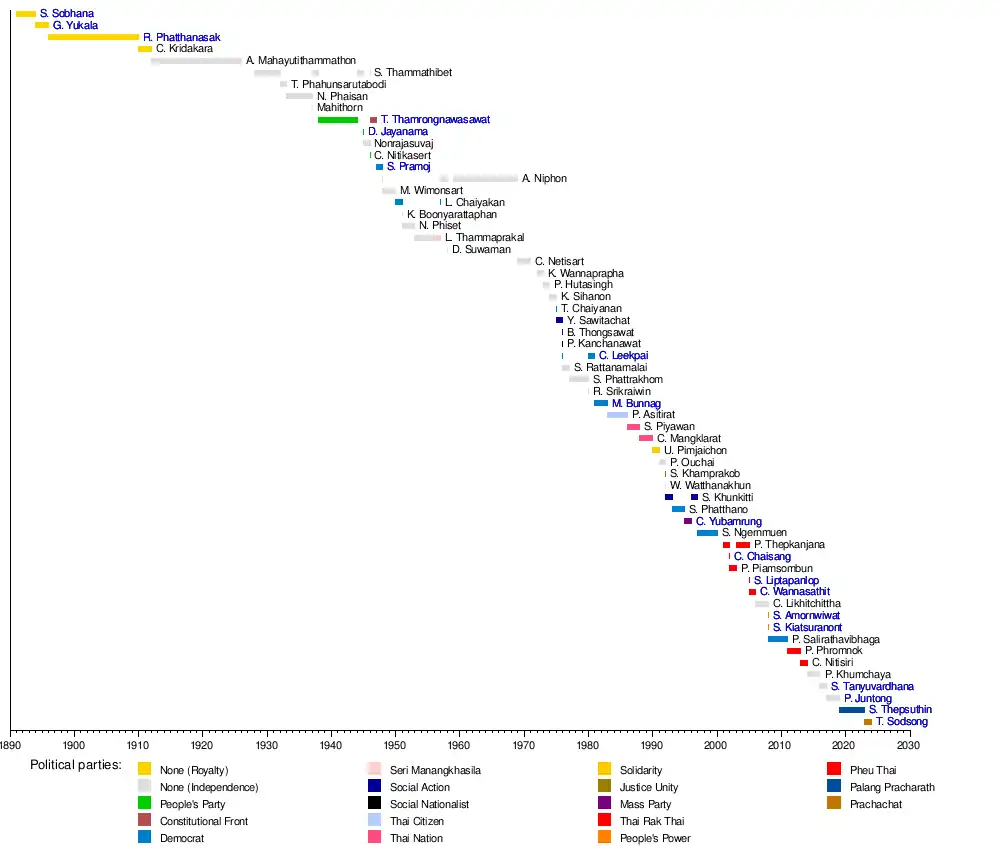 54 | Somsak Thepsuthin | 62 | 10 July 2019 | 17 March 2023 |