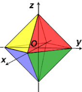 Regular tetrahedron of side s and mass m with an axis of rotation passing through a tetrahedron's vertex and its center of mass | ![]() |