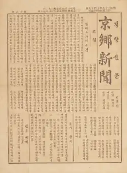 - ^ 경향신문 (京鄕新聞). Encyclopedia of Korean Culture (in Korean). Archived from the original on 2024-02-03. Retrieved 2024-02-03.