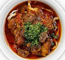 - Lanzhou beef noodle soup – Beef noodle soup from Lanzhou, China