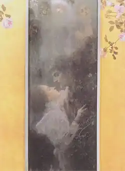Love[23] | 1895 | Oil on canvas, 62.5 cm × 46.5 cm | Vienna Museum, Vienna | For its evanescent rarefaction the love scene reveals its symbolist mould. The work is part of Klimt's series of Allegories and Emblems, whose intent was to translate life's most significant moments, and its psychological nuances, into forms of metaphorical intensity. |