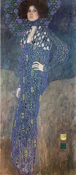 Portrait of Emilie Flöge[59] | 1902 | Oil on canvas, 178 cm × 80 cm | Vienna Museum, Vienna | |