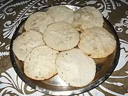 Akki rotti | India | "Rice bread", a rice-based breakfast item unique to the state of Karnataka, India | |