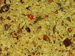 Puerto Rico | A part of the Puerto Rican gastronomy consisting of a combination of rice, pigeon peas, olives, capers, and pork, cooked in the same pot with Puerto Rican-style sofrito, spices and annatto oil.[3] |