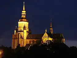 Spire burned down in 1577, now 97 metres (318 ft) in height | |