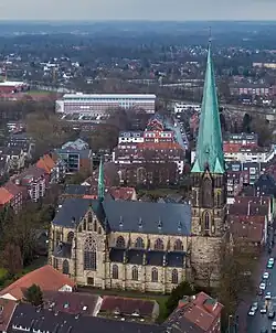 102.0 m (334 ft) | H<75 | Sacred Heart Church | Catholic | 51°14′48″N 6°46′44″E / 51.246667°N 6.778943°E | 1907 | Düsseldorf | ![]() |