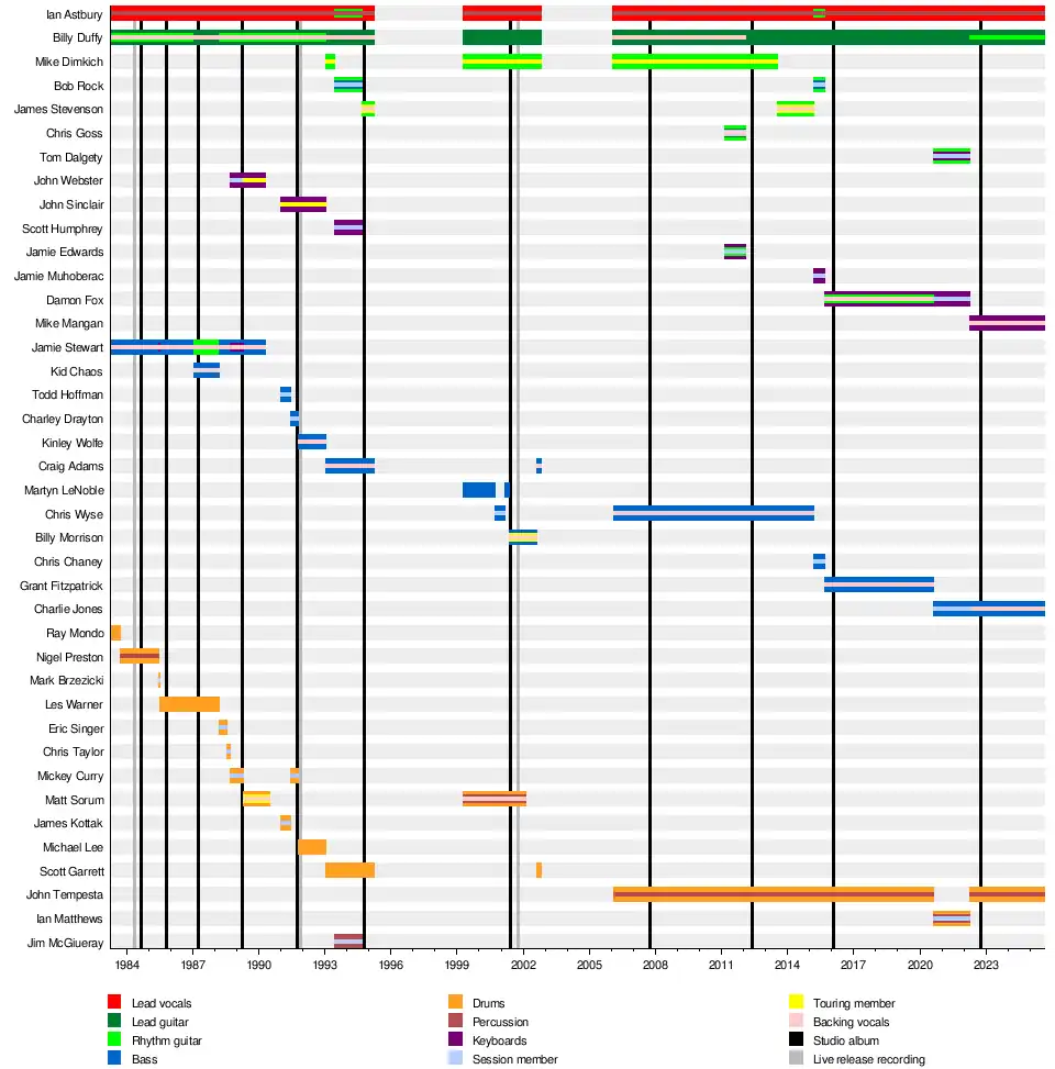 Stevenson replaced Dimkich for the 1994 tour in promotion of The Cult, and again when he left in 2013.[22] | |