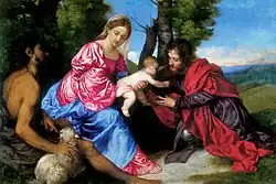 Madonna and Child with Saint John the Baptist and Saint Catherine (Aldobrandini Madonna) | c. 1532 | 100.6 × 142.2 cm | National Gallery (London)[18] |