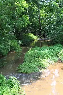 The elevation at the mouth of Lithia Springs Creek is 436 feet (133 m) above sea level.[1] The elevation of the creek's source is between 700 feet (210 m) and 720 feet (220 m) above sea level.[3]