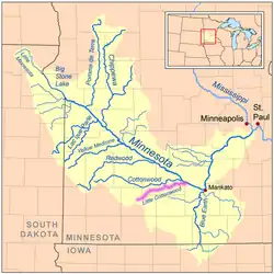 - ^ "Middle Minnesota River Major Watershed". Minnesota River Basin Data Center. Minnesota State University, Mankato. 2000-06-06. pp. Streams within the Middle Minnesota River Major Watershed. Retrieved 2007-06-03.