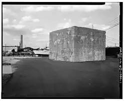 After the war, the Tuckerton Wireless Station was included in German war reparations paid to America. Shortly afterwards, it was sold to RCA which operated it until 1948 as a backup to their famous Radio Central facility in Rocky Point, New York.[30] In 1921, RCA installed two massive Alexanderson alternators, which were removed in 1948. For transatlantic communications, the radio station operated under the call signs WCI and WGG. For coastal communications, after World War I, the station operated under the callsign WSC. The 820-foot (250 m) steel tower, anchored by three large concrete blocks, was taken down on December 27, 1955.[35] The three huge anchor blocks still exist today, in a backyard on North Ensign Drive and in the middle of South Ensign Drive and Staysail Drive. Many smaller anchor blocks providing foundations for smaller towers that supported the umbrella antenna are still visible in the lagoons. Remains of the large tower can be seen in scraps at the Giffordtown Museum.[36]