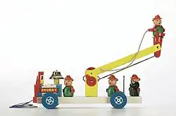 Little People started in 1950 with the "Looky Fire Truck" and three round-headed fire men (attached permanently to the toy).[5][6] Following the success of this toy, Between 1952 and 1953, Fisher-Price developed the "Super-Jet" and "Racing Rowboat".[5]