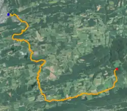 Satellite map of Little Shamokin Creek. The red dot is the stream's source and blue dot is its mouth. | |