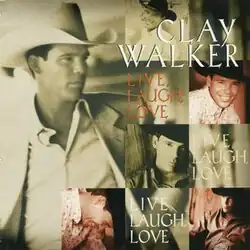 "Live, Laugh, Love" is a song written by Allen Shamblin and Gary Nicholson, and recorded by American country music singer Clay Walker. It was released in August 1999 as the second single and title track from his album of the same name. "Live, Laugh, Love" reached a peak of number 11 on the Billboard Hot Country Singles & Tracks (now Hot Country Songs) charts. It also peaked at number 21 in Canada and at number 65 on the Hot 100.