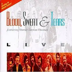 Live is a live album by the band Blood, Sweat & Tears, that was recorded in 1980 and released in 1994 by Avenue Records through Rhino Records.[1][2][3] This album was recorded at the Street Scene in Downtown Los Angeles on October 12, 1980. This set was recorded five years after the In Concert/Live And Improvised album. The band's hit songs included in this collection were compressed into a 15-minute medley instead of the full-length versions that were included on their previous live album. The rest of the songs here are from the Nuclear Blues album they were touring to support at the time of this recording. One exception was an 11+1⁄2-minute version of "Gimme That Wine" that was originally released on the Brand New Day album in 1977.