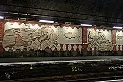James Street station has three platforms, although only two see regular use. Platforms 2 and 3 are situated on either side of the original Mersey Railway tunnel, and platform 1 in the newer tunnel on the loop line. Only platforms 1 and 3 are in regular use for the loop line, Platform 3 by trains westbound to the Wirral and Platform 1 by trains eastbound towards Liverpool. Platform 2, which is situated on the empty stock line opposite platform 3, has not normally been used by passenger services since the opening of the loop line. This platform has a frieze artwork, on the wall.