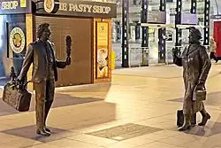 The main concourse features a pair of statues of comedian Ken Dodd and politician Bessie Braddock, a work entitled "Chance Meeting" by sculptor Tom Murphy, which were unveiled by Ken Dodd himself during June 2009.[54] On 31 August 2014, the Earl of Wessex unveiled a memorial to the Liverpool Pals at the station. The memorial, which comprises two bronze friezes, was also sculpted by Tom Murphy.[55] During 2014, former Platforms 1–5 were fully refurbished by national rail infrastructure maintenance company Network Rail.[56]