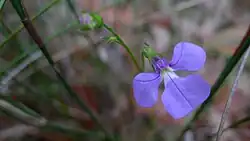 Lobelia anceps, commonly known as trailing lobelia,[2] is a small herbaceous, flowering plant in the family Campanulaceae. It has dark blue or purple flowers and grows in New South Wales and Queensland.