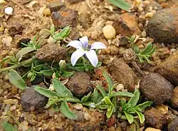 Lobelia pratioides, the poison lobelia, is a small prostrate flowering plant, native to Australia. The leaves are usually between 6 and 15 mm long. Pale blue or lilac flowers are produced from November to January in the species native range.[2] The rounded fruits are around 5 mm long.[2]