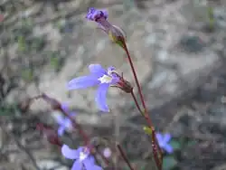 Lobelia rhombifolia, commonly known as tufted lobelia, is an annual plant from southern Australia. They range from 5 to 30 cm in height and produce purple flowers, with a white throat and two recurved upper lobes.[3][4] The flowers appear at different times across their native range:
