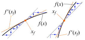 A common and simple way to know whether a fixed point is asymptotically stable is to take the derivative of the map f.[Gulick 4] This derivative is expressed as , is asymptotically stable if the following condition is satisfied.