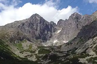 Lomnický štít (English: Lomnica Peak[1][2] or Lomnický Peak[3][4], Hungarian: Lomnici-csúcs, German: Lomnitzer Spitze, Polish: Łomnica) is one of the highest and most visited mountain peaks in the High Tatras mountains of Slovakia. Connected by cable car to Tatranská Lomnica, its summit is 2,634 metres (8,642 ft) above sea level, making it the second highest peak in the High Tatras after Gerlachovský štít (2654 m).