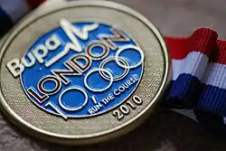 The London 10,000 is an annual road running event over 10 kilometres (6.2 mi) which takes place in late May in London, United Kingdom. Established in 2008, the race goes through the roads of St. James's Park and finishes on the mall by Buckingham Palace.[1] VitalityHealth took over sponsorship in 2016 from the original sponsor Bupa.[2]