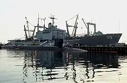The Long Beach Naval Shipyard (Long Beach NSY or LBNSY), which closed in 1997, was located on Terminal Island between the city of Long Beach and the San Pedro district of Los Angeles, approximately 23 miles south of the Los Angeles International Airport.[1] The primary role of NSY Long Beach at the time of its closure was overhaul and maintenance of conventionally-powered US Navy surface ships, but it also had served as the homeport for several auxiliary ships during its operating history.[2]