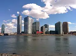 In 2001, the neighborhood was rezoned from an industrial neighborhood to a residential neighborhood, and the area underwent gentrification, with developments such as Hunter's Point South being built in the area.[28] Since then, there has been substantial commercial and residential growth in Long Island City, with 41 new residential apartment buildings being built just between 2010 and 2017.[29][30] A resident of nearby Woodside proposed establishing a Japantown in Long Island City in 2006, though this did not occur.[31] By the mid-2010s, Long Island City was one of New York City's fastest-growing neighborhoods.[32]